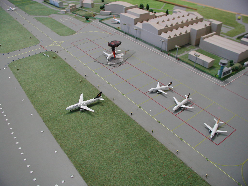 Um für den Ernstfall bei Flugunfällen sowie anderer Unfälle gut gerüstet zu sein, bedarf es intensiver Ausbildung der Kollegen bei der Flughafenfeuerwehr. Dafür wird in den Wachabteilungen ein Flughafenspezifischer Ausbildungsplan erstellt in dem theoretische und praktische Ausbildungen geübt werden können. Für theoretische Grundlagen bei Unfällen mit Flugzeugen steht den Kollegen der Flughafenfeuerwehr eine Modellanlage (siehe Bild 1) zur Verfügung. An dieser Modellanlage kann das richtige taktische Vorgehen bei Unfällen mit Flugzeugen geübt werden. Dabei können zum Beispiel unterschiedliche Landerichtungen, verschiedene Schadenslagen mit Flugzeugen dargestellt, und in der Theorie geübt werden. Um Ernstfälle unter realen Bedingungen üben zu können, werden regelmässige Einsatzübungen verschiedenster Art z. B. Löschübungen (siehe Bild 2), Technische Hilfeleistungen (siehe Bild 3), durchgeführt. Dazu kommen noch unangekündigte Übungen, bei denen die Schnelligkeit und Einsatztaktik im Vordergrund stehen. Alle 2 Jahre findet auf dem Flughafen eine groß angelegte Unfallübung statt, (siehe Bild 4) wo neben der Menschenrettung und Brandbekämpfung die Zusammenarbeit mit den anderen Rettungskräften der Stadt Dresden trainiert wird.
